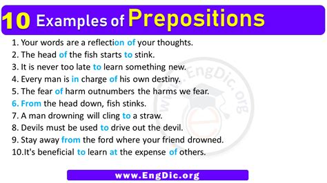 10 sentences of preposition on