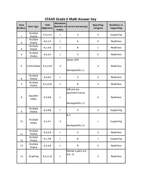 2019 6th grade math staar test answer key