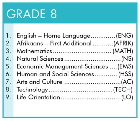 8th grade subjects list
