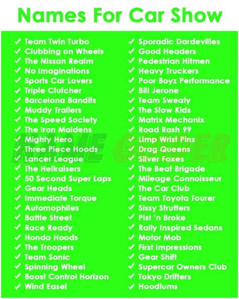 car show name ideas
