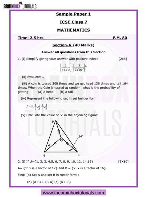 class 7 maths questions icse