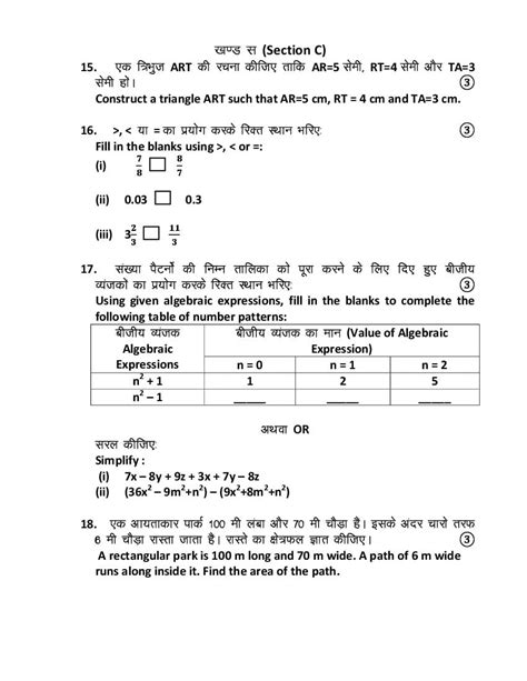 class 7 maths second term question paper with answer 2024