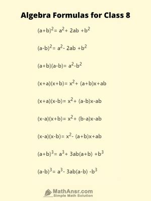 class 8 math formula all chapter worksheets