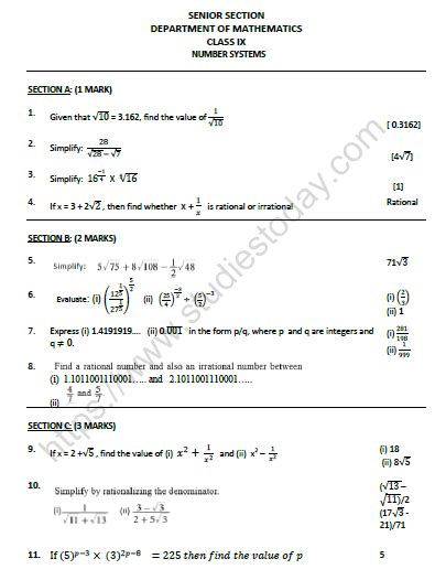 class 9 maths number system worksheet pdf