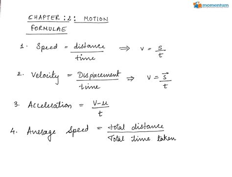 class 9 physics chapter 2 formulas