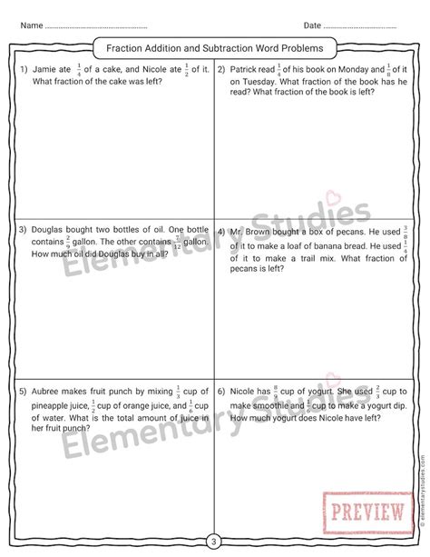 grade 4 adding and subtracting fractions word problems