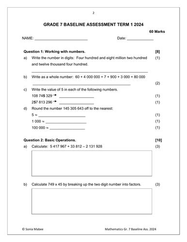 grade 7 maths baseline test pdf