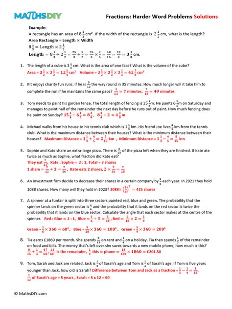 hard fraction word problems with solutions pdf