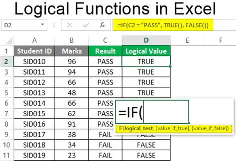 logical functions in excel meaning