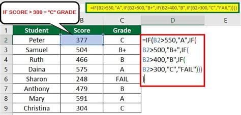 ms excel if formula for grade