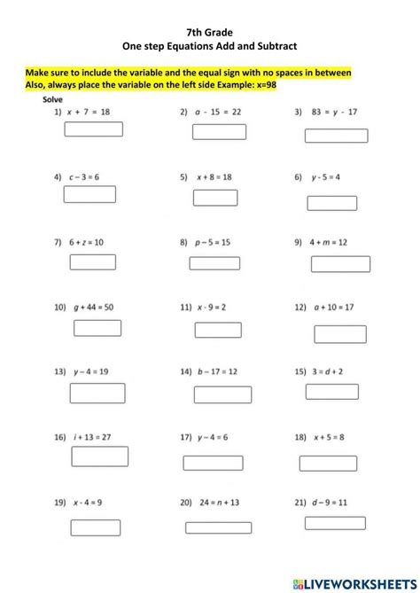 one step equations worksheet 7th grade pdf
