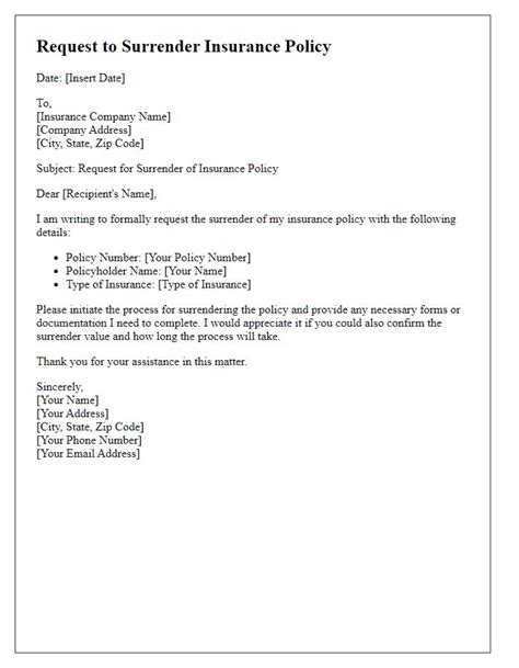 policy surrender letter sample