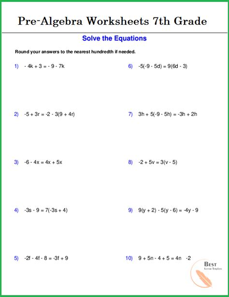 pre algebra worksheets grade 7