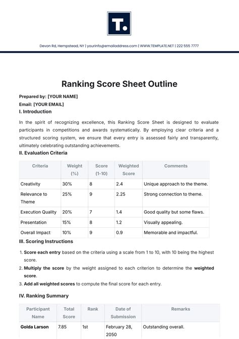 ranking score sheet