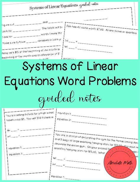 solving linear systems word problems worksheet