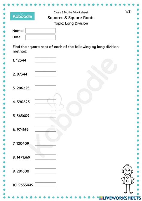 square root long division method worksheet