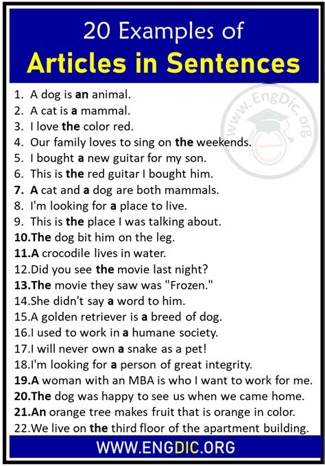 use of articles in sentences examples