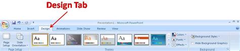use of design tab in powerpoint