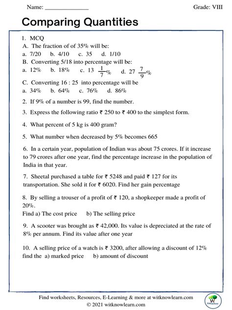 worksheet on comparing quantities class 8 pdf cbse